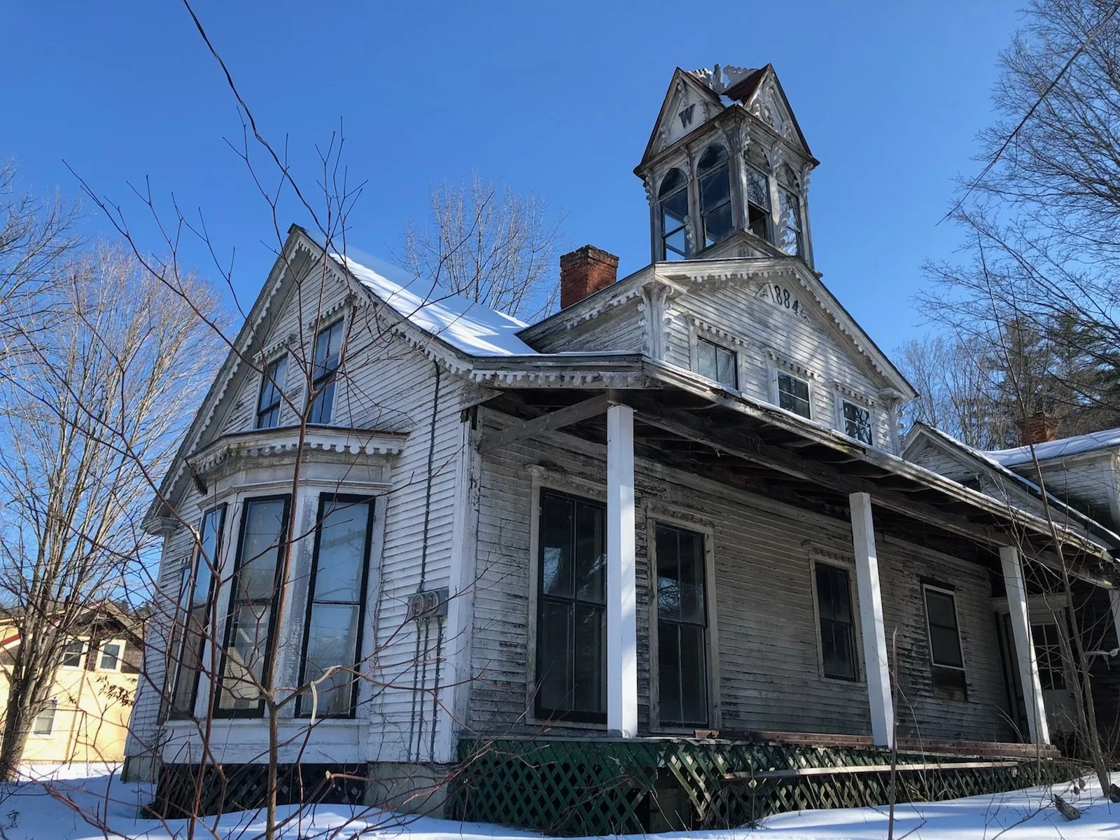 Built in the early 1880s by Harlan Ware, this whimsical cape features scalloped trim, a distinctive cupola, and details inspired by Andrew Jackson Downing’s “suburban cottage” designs. Long cared for by the Ware and Pitcher families, it later fell into disrepair and was taken by the Town for back taxes. Restoration would save its rich architectural character and contribute positive investment to Alstead’s historic Mechanic Street neighborhood.